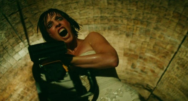 Playing like a romance infused zombie comedy at times, Plaza injects far more humour into this instalment than the previous ones. Sure gags like Sponge Bob copyright infringement may bring a smirk the first time it is referenced, but it becomes tiresome rather quickly. Sadly many of the jokes fall flat as you can see the set up coming from a mile away. In fact, that is one of the major problems with [Rec]3: Genesis, you know which direction the film is going every step of the way. There are no surprises and characters seemingly go out of their way to make stupid decisions. This really hinders several moments, such as when Carla decides to fight back with a chainsaw, that otherwise should have felt energizing.